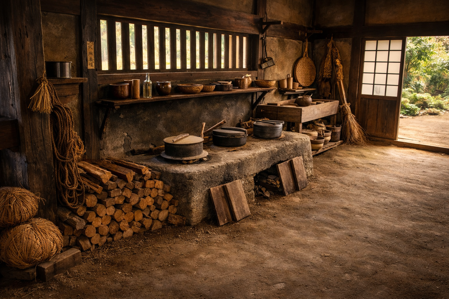 昔の家では、かまどがあり、人が集い、
